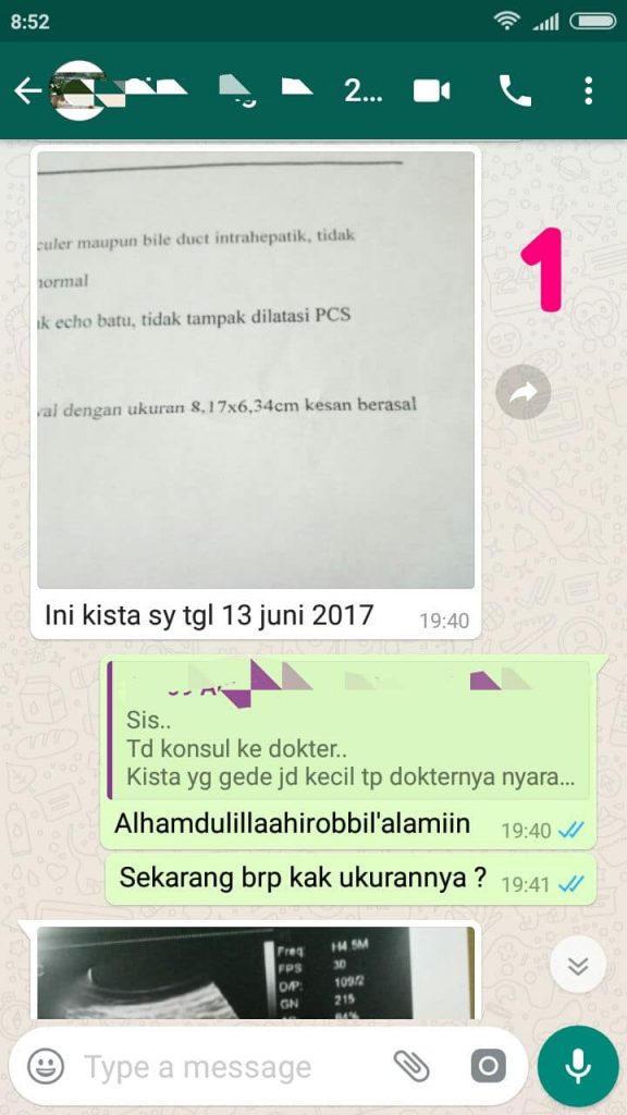 “Saya sempat menikmati hidup selama 10 bulan. Akhir 2006, menstruasi saya mulai tidak teratur lagi dan sesekali muncul denyutan di tempat semula. Khawatir akan kondisi yang lebih buruk, saya check up ke dokter ahli kandungan dan kebidanan lagi. Setelah di USG, ternyata tumbuh lagi kista di tempat semula dengan ukuran yang hampir sama. Saat itulah saya makin stress, seolah kematian sudah di ambang mata. Lalu, saya dan suami berencana berobat ke Singapura. Namun ayah saya mencegah, menganjurkan saya mengkonsunsi Obat Herbal Ling Shen Yao lebih dulu, ” kata Lie.