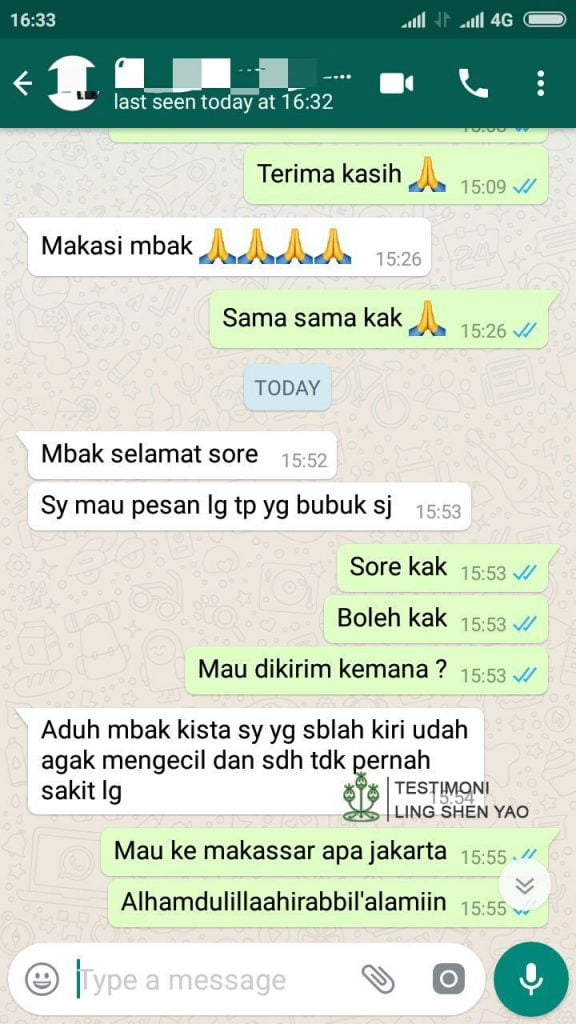Jangan sampai hal ini terjadi pada Anda juga, sayangi diri Anda atau keluarga yang mengalaminya, segera konsumsi Ling Shen Yao untuk mengatasi keluhan Anda hingga akarnya, tidak tumbuh lagi.